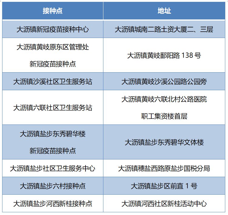 接种地点:截至5月14日,大沥镇共开设8个疫苗接种点,如下所示: