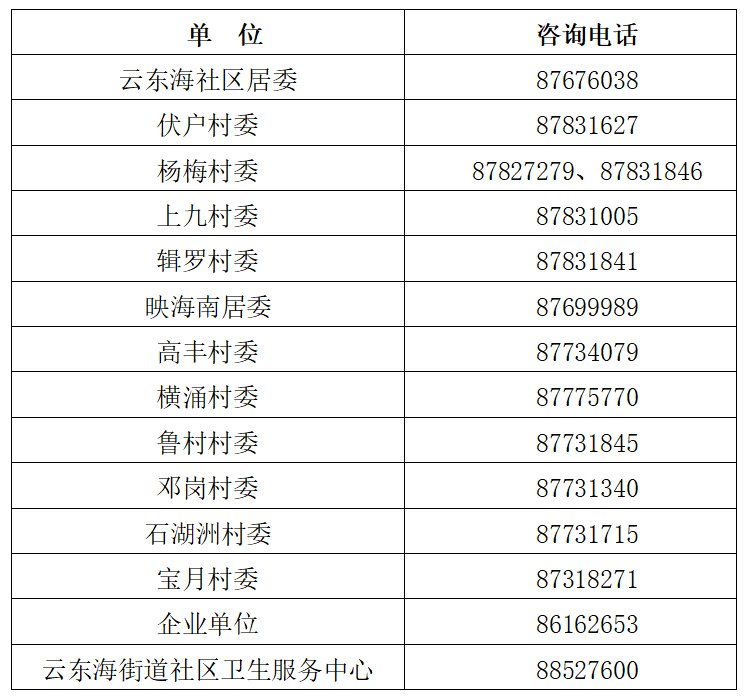 PS:对于辖区内大型企事业单位单日超100人接种疫苗的可采取团体预约的方式,与云东海街道社区卫生服务中心预约接种时间后进行统一接种。