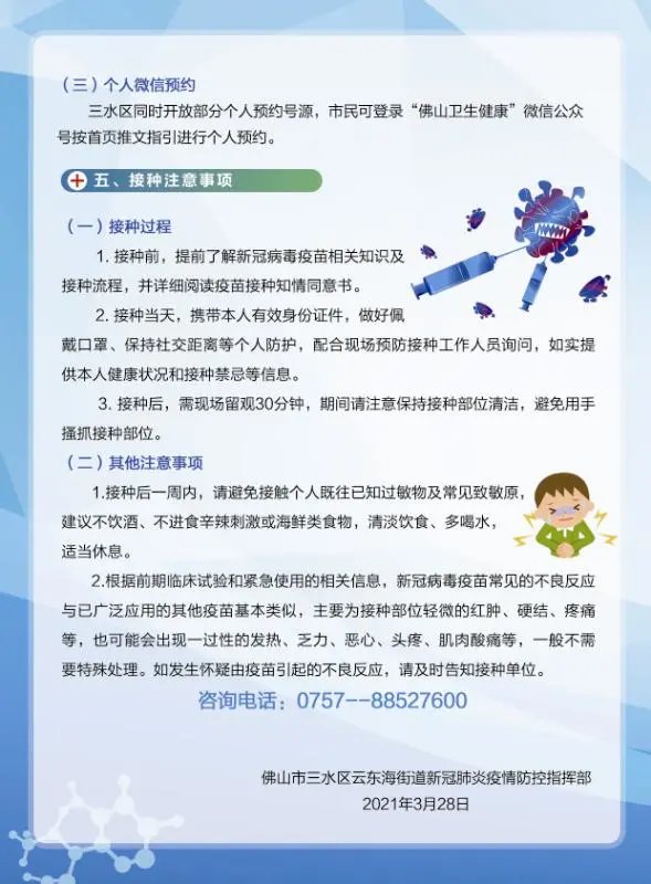 佛山三水区云东海街道新冠疫苗怎么预约?