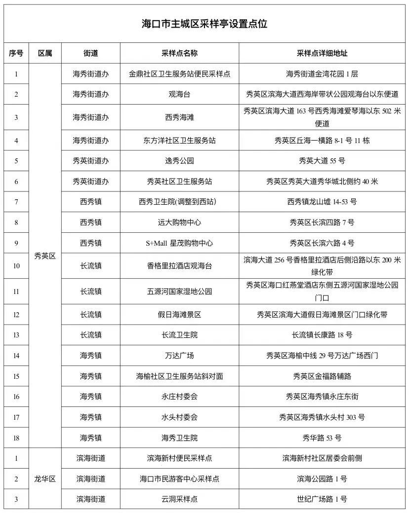 2022海口便民核酸检测采样亭地址汇总(海口市核酸采样点)