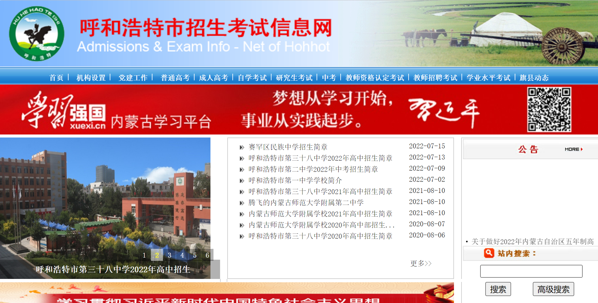 第一步:家长可登录呼和浩特市招生考试信息网,进入“呼和浩特市义务教育小学入学服务平台”;