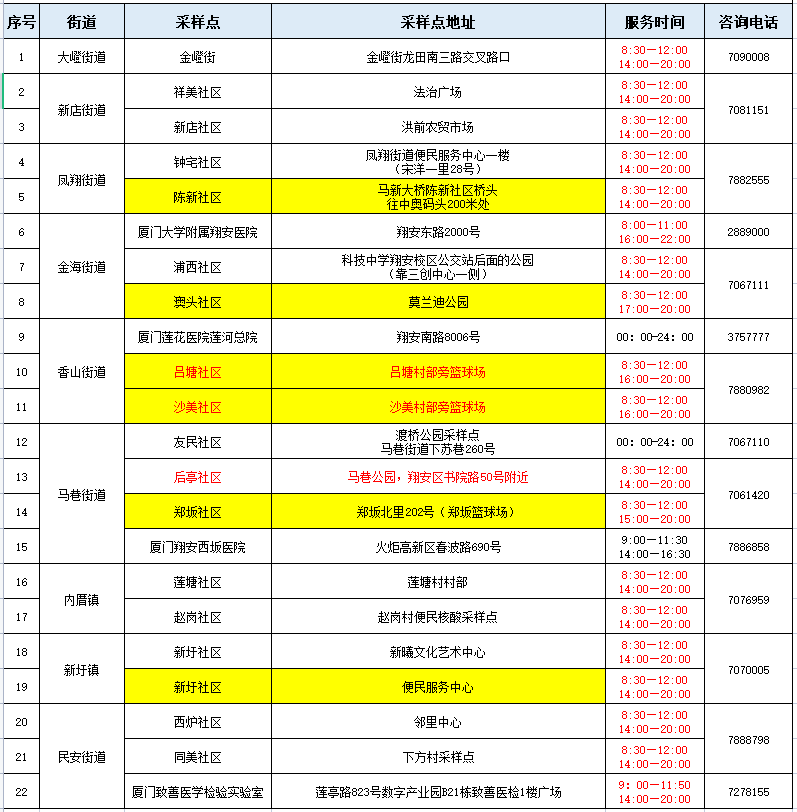 注意:8月9日翔安区新增免费核酸检测点位,并调整时间!