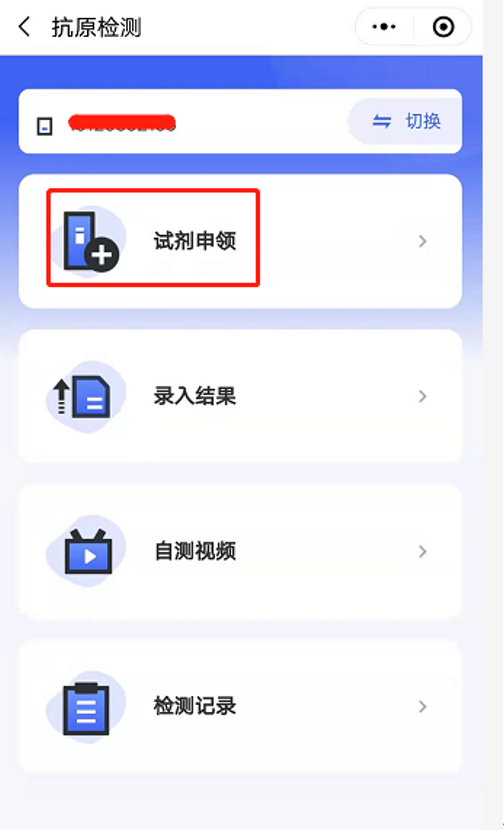 (1)点击进入试剂申领页面