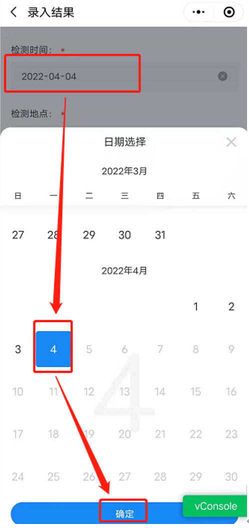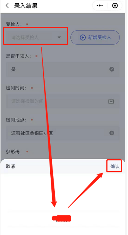 (2)点击受检人下拉框-滑动选择受检人-点击【确认】