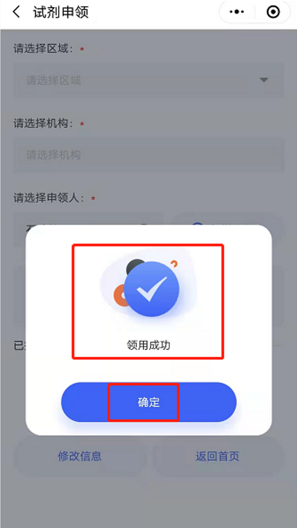 (1)请选择机构:选择是跟哪个机构申领的试剂。