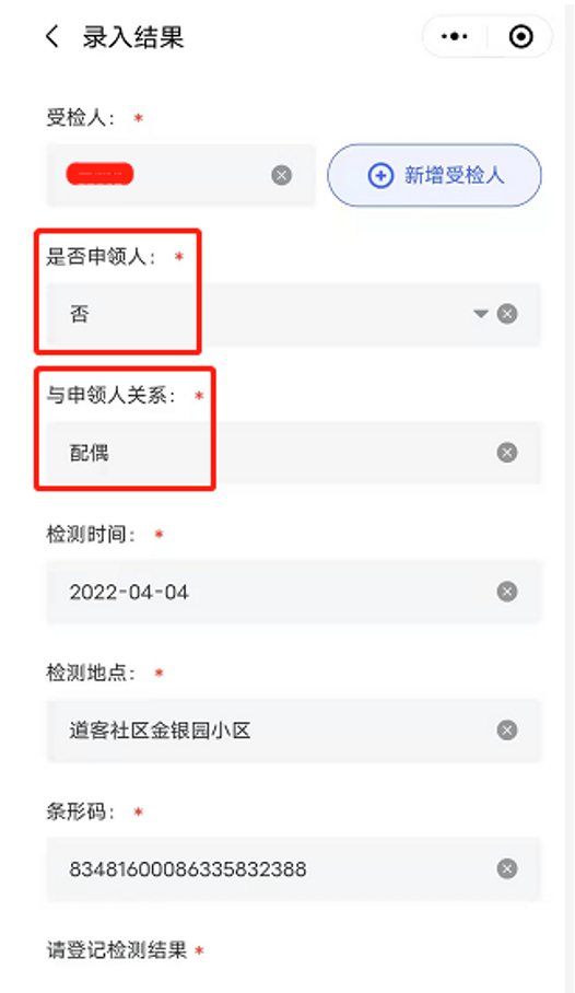 (2)与申领人关系:如果受检人不是当前登录用户,则需要选择与申领人关系。