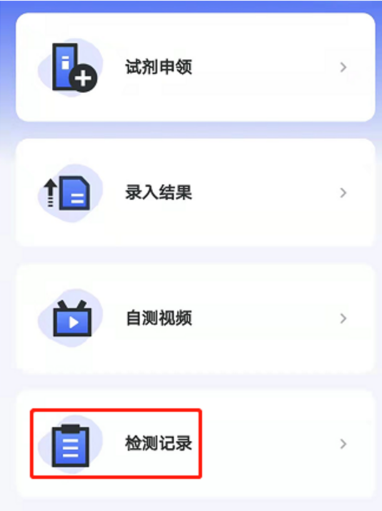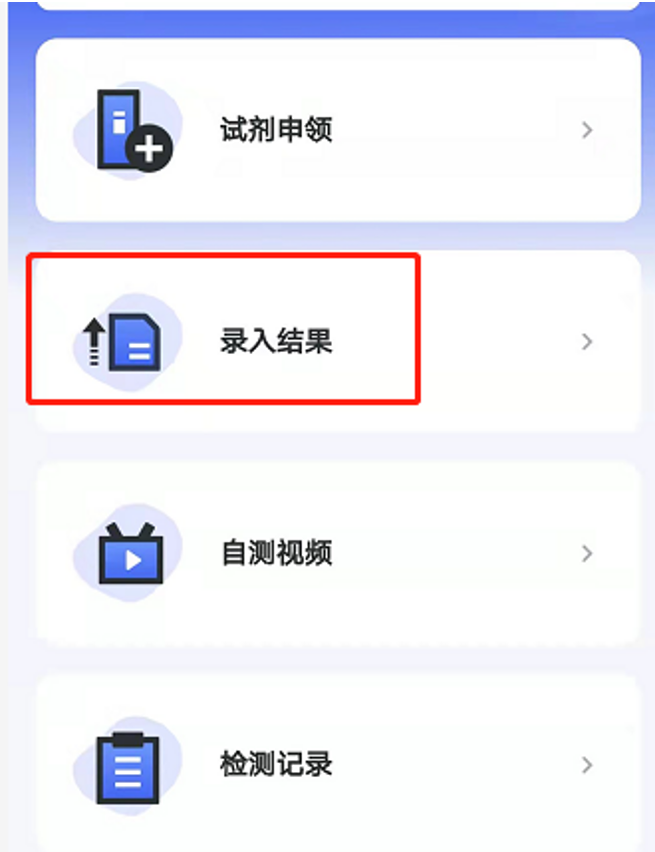 (3)结果类型-自测:指在【试剂申领】页面领用,并在【录入结果】页面上传检测结果的数据。