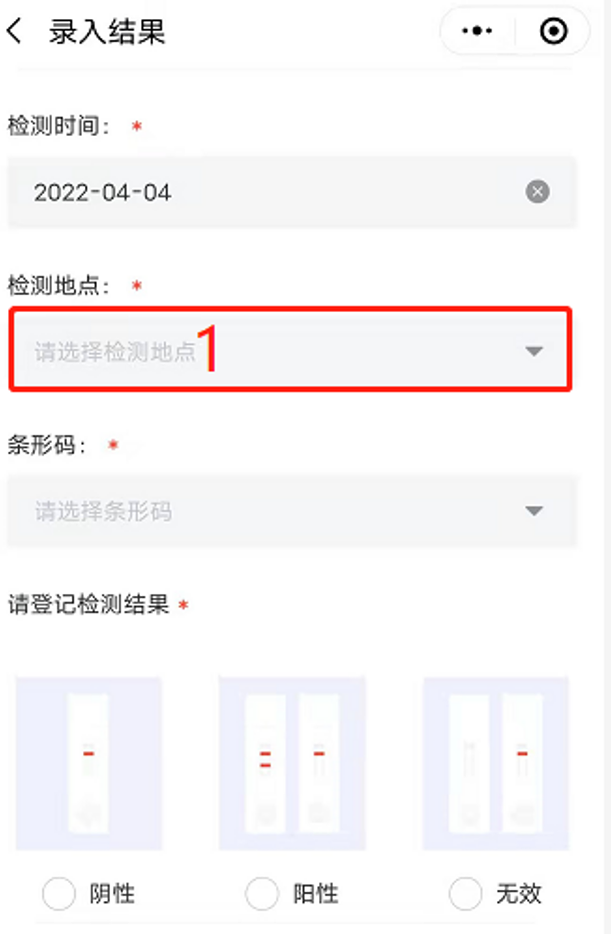 (3)请选择条形码:只显示当前登录账号申领并且还未进行结果上传的条形码。