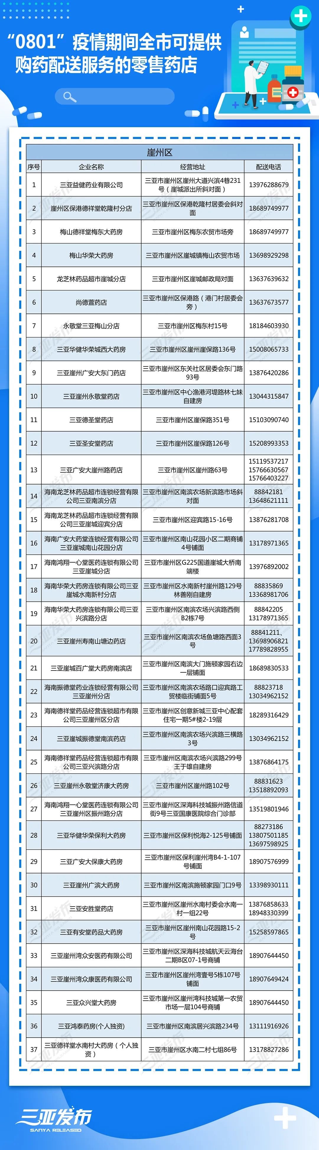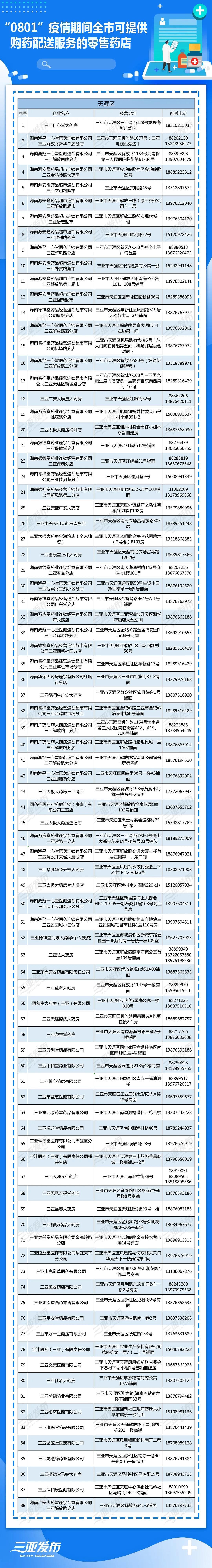 “0801”疫情期间全市可提供购药配送服务的零售药店