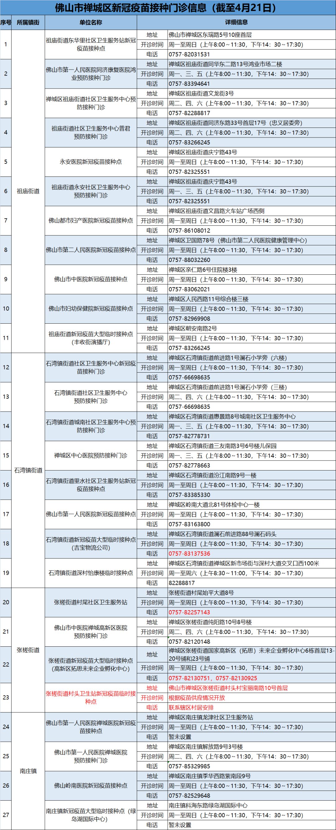 截至2021年4月21日,禅城区新冠疫苗接种门诊增加至27个,符合条件的市民可预约接种。