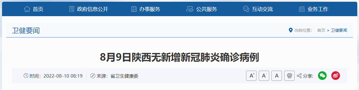 8月9日陕西无新增新冠肺炎确诊病例 陕西省有无新增冠状型肺炎病例