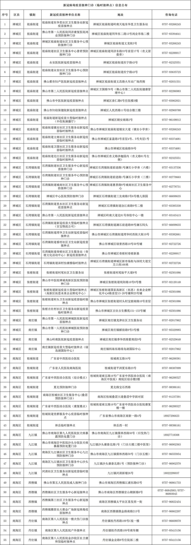 佛山各区新冠疫苗接种点公布 佛山各区新冠疫苗接种点公布名单