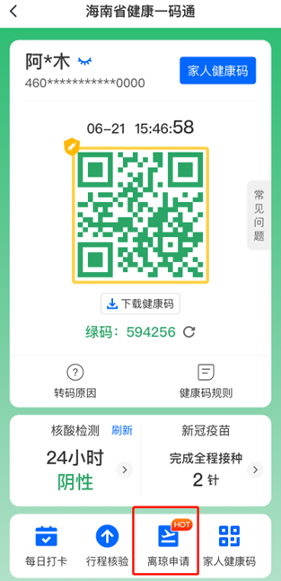 根据《海南省新冠肺炎疫情防控指挥部关于滞留海南旅客离岛返程有关事宜的公告》,海南健康码开放离岛申请入口,现将有关事项通知如下。