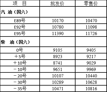 黑龙江省成品油最高零售价格表(单位:元/吨)
