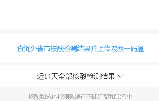 来陕返陕人员可通过此入口查询外省市核酸检测结果并上传至陕西一码通,方便省内外核酸结果互认互通。