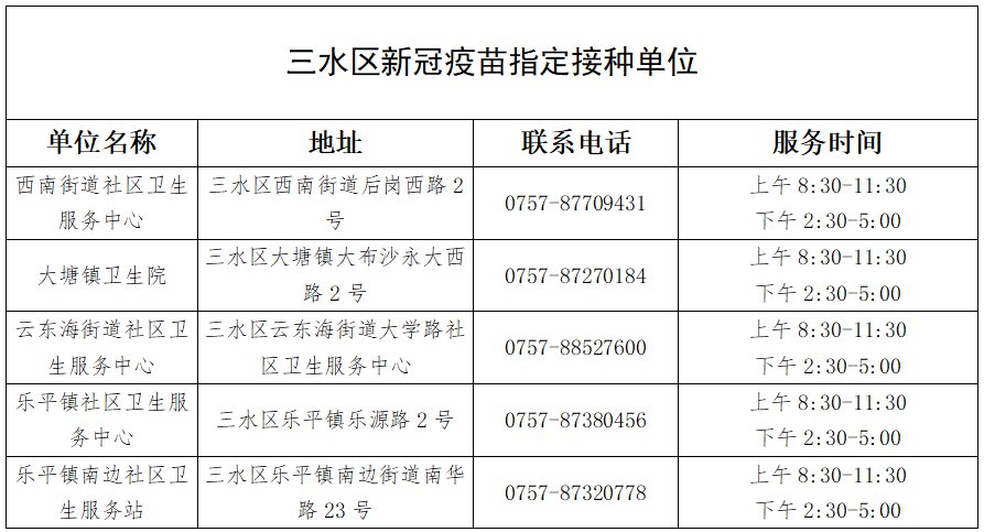 注:三水区专门设立了16个疫苗接种点负责本次大规模人群疫苗接种,其中11个接种点已可对外服务,其他5个将在3月31日前建成对外服务。