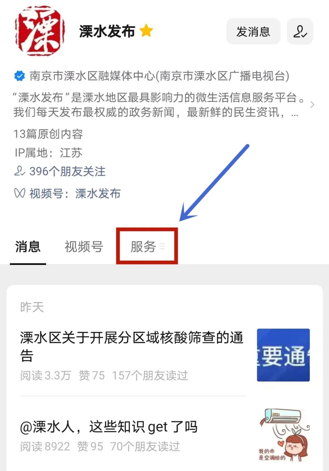 1、打开“溧水发布”公众号