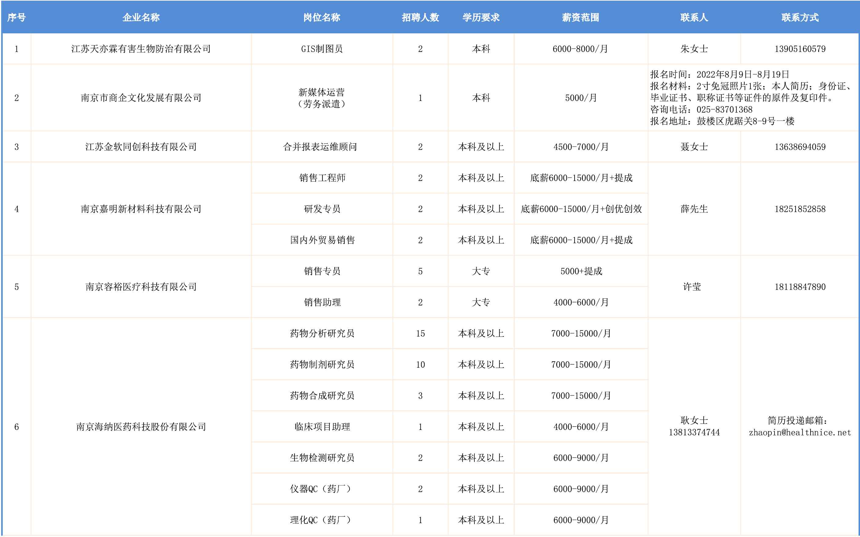 南京市鼓楼区离校未就业大学生网络招聘会8月第2期
