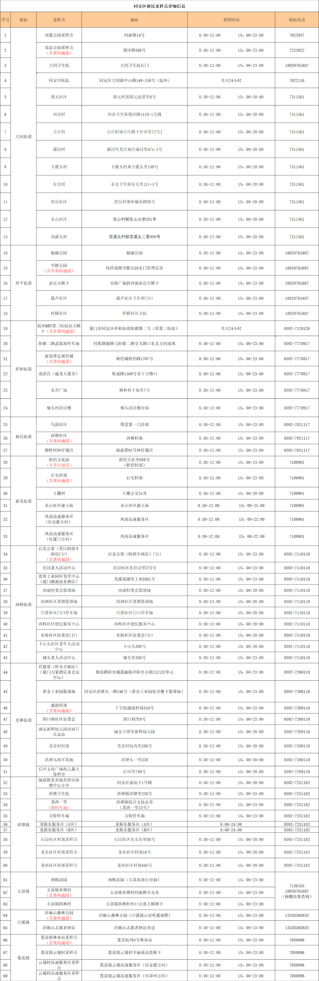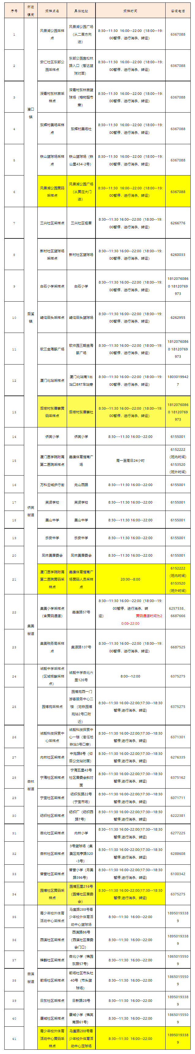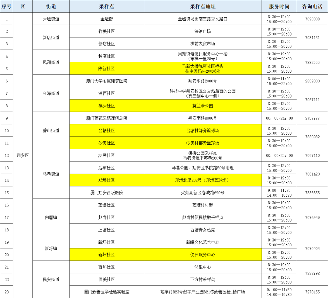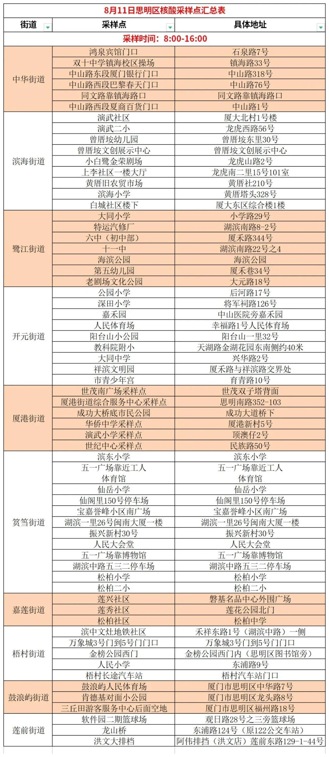 8月11日厦门免费核酸采样点汇总(持续更新)
