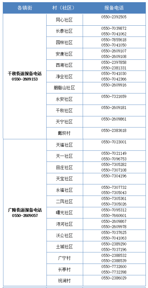 天长市疫防办电话:0550-7331398