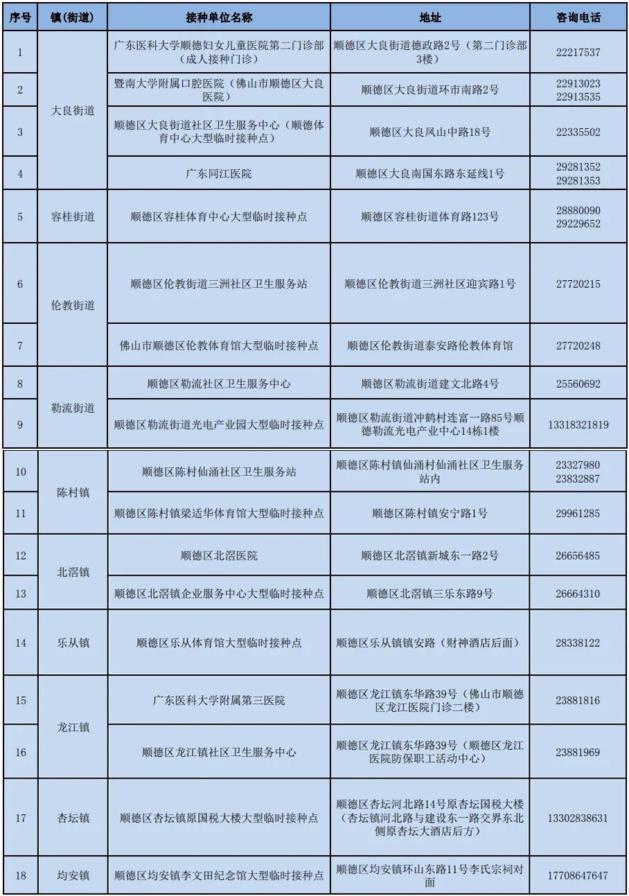 顺德区新冠疫苗接种门诊一览 新冠疫苗 顺德