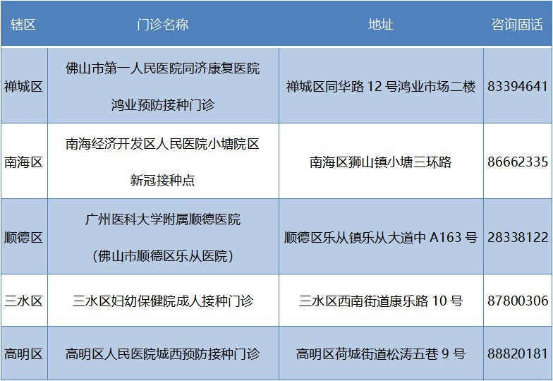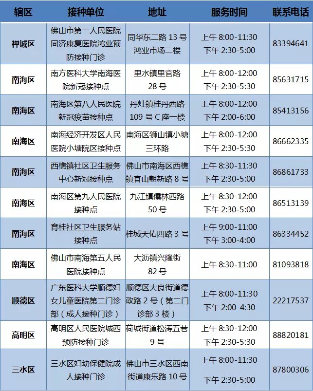 3月22日最新消息:佛山首批11家接种门诊新冠疫苗开放个人预约。