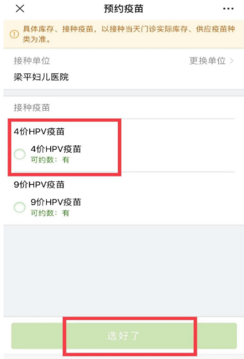 (八)选择您想接种的疫苗,并点击下方-选好了。