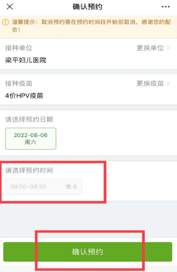 (九)点击您想预约的日期及时间并点击下方-确认预约。