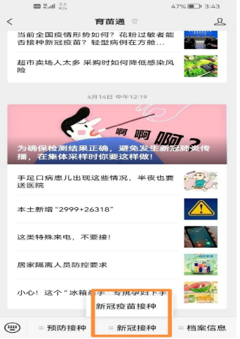 (四)再次进入消息页面,点击新冠疫苗接种。
