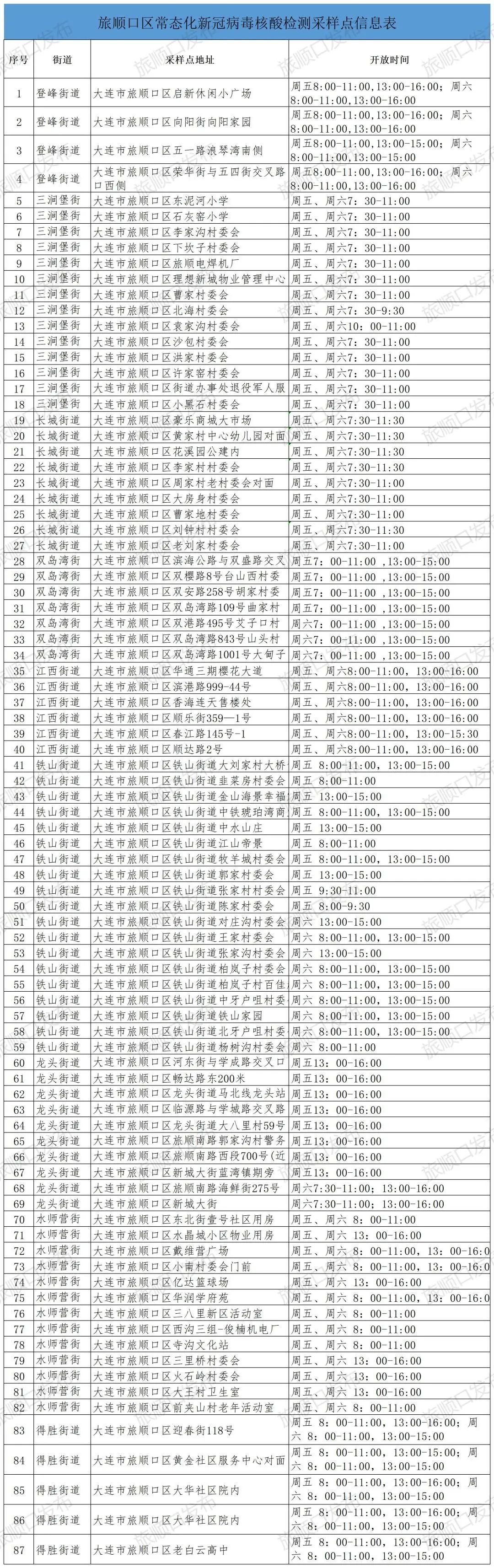 大连旅顺口区常态化核酸检测安排(大连市旅顺口区核酸检测)