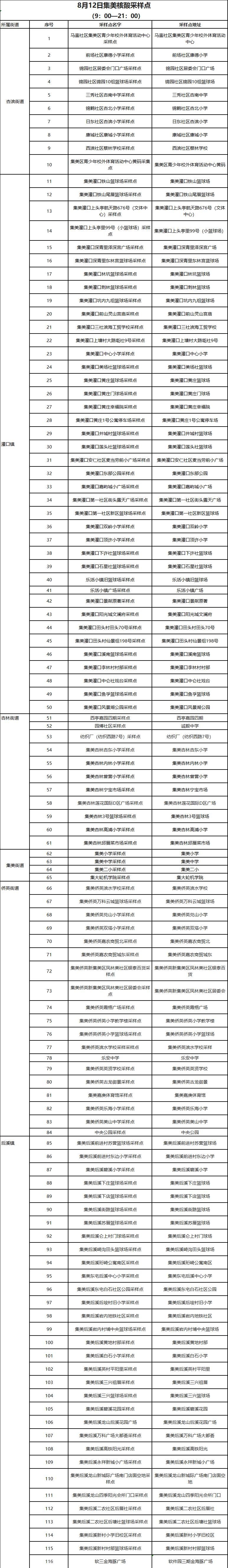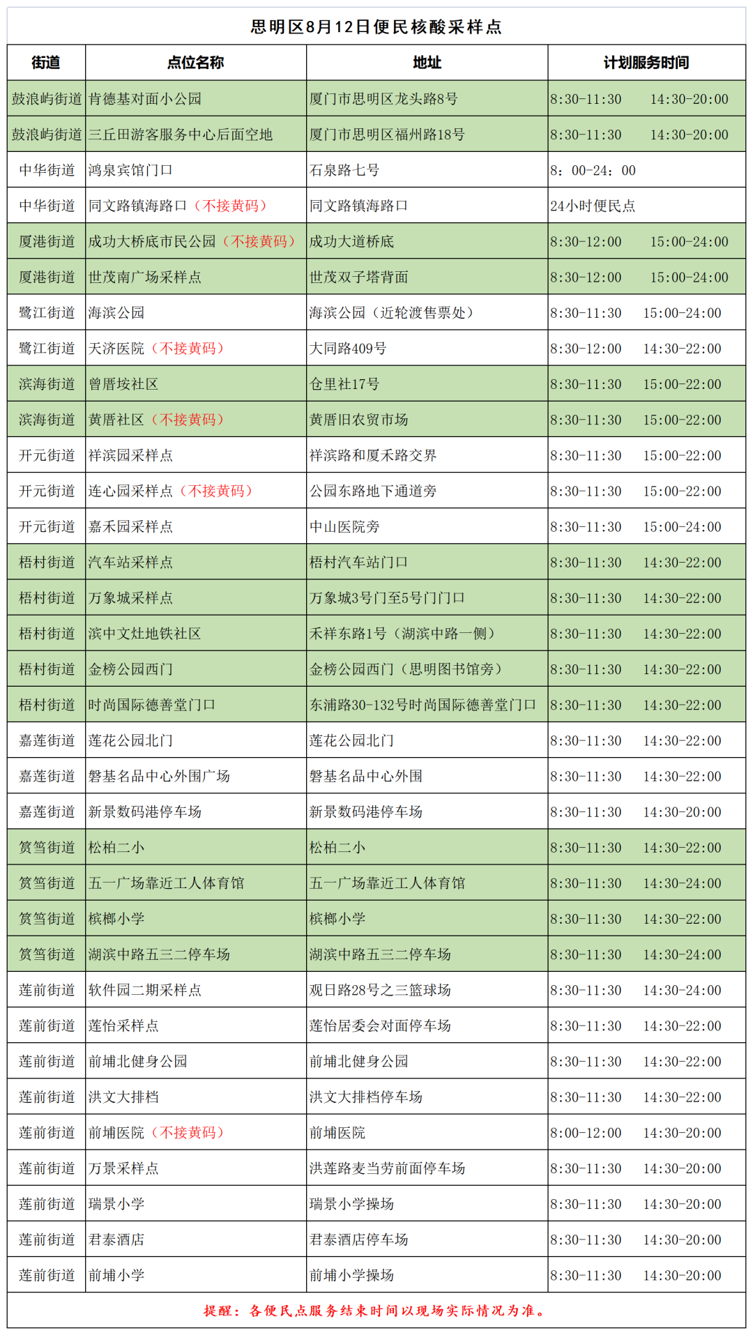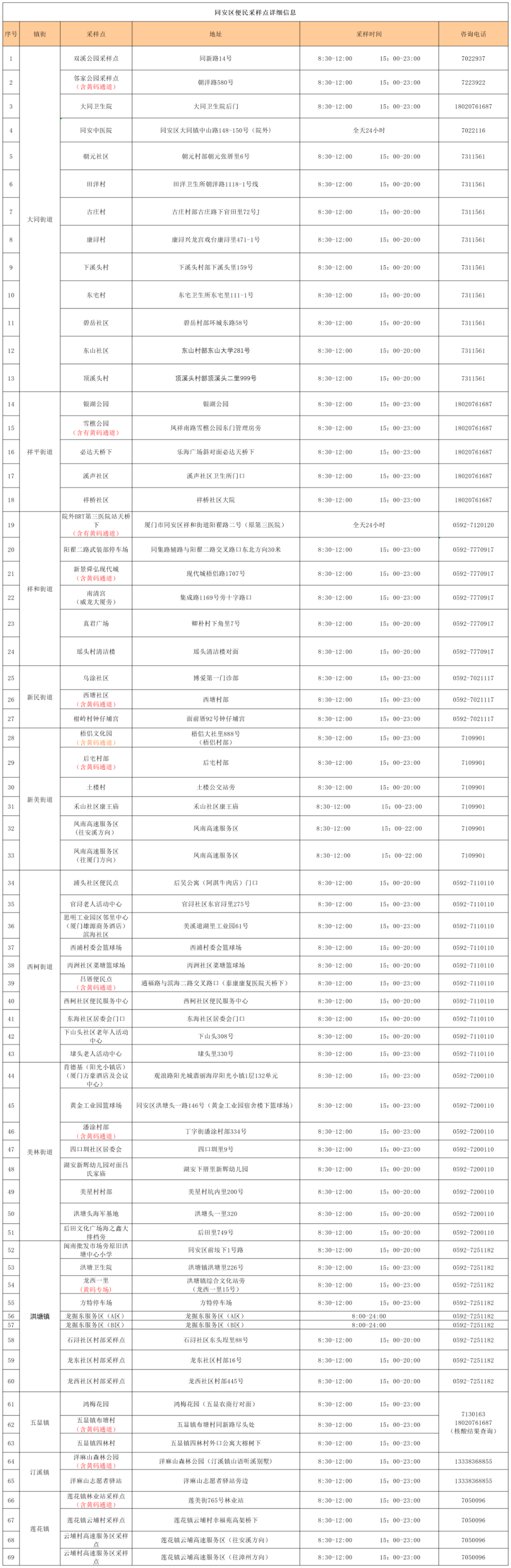 8月12日,湖里区49个全民采样点完整表格(检测结果在24小时内反馈)
