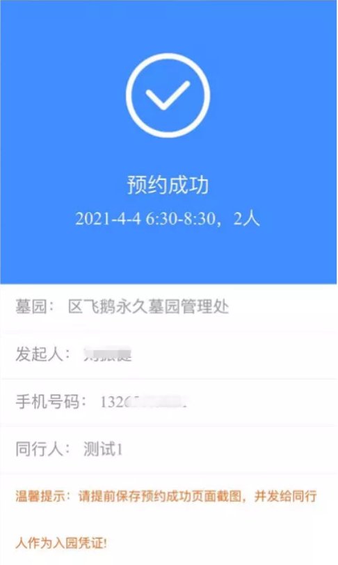 步骤五:成功预约后会跳转到预约成功页面,请提前保存预约成功页面截图,并发给同行人作为入园凭证。