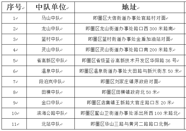 交警中队挂牌点: