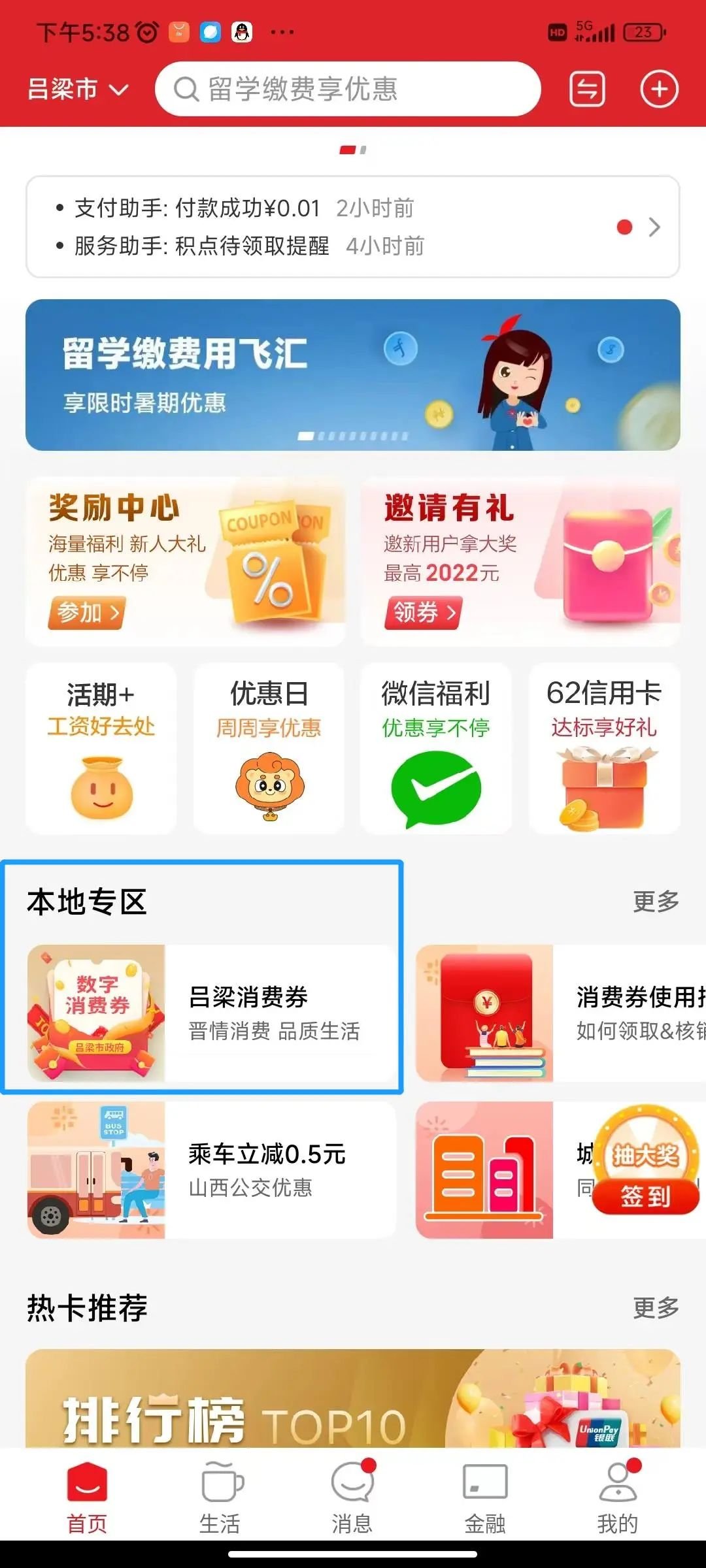 云闪付首页-本地专区-吕梁消费券-文旅消费券