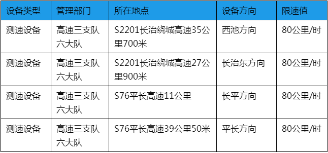 高速三支队六大队辖区测速点位的公告