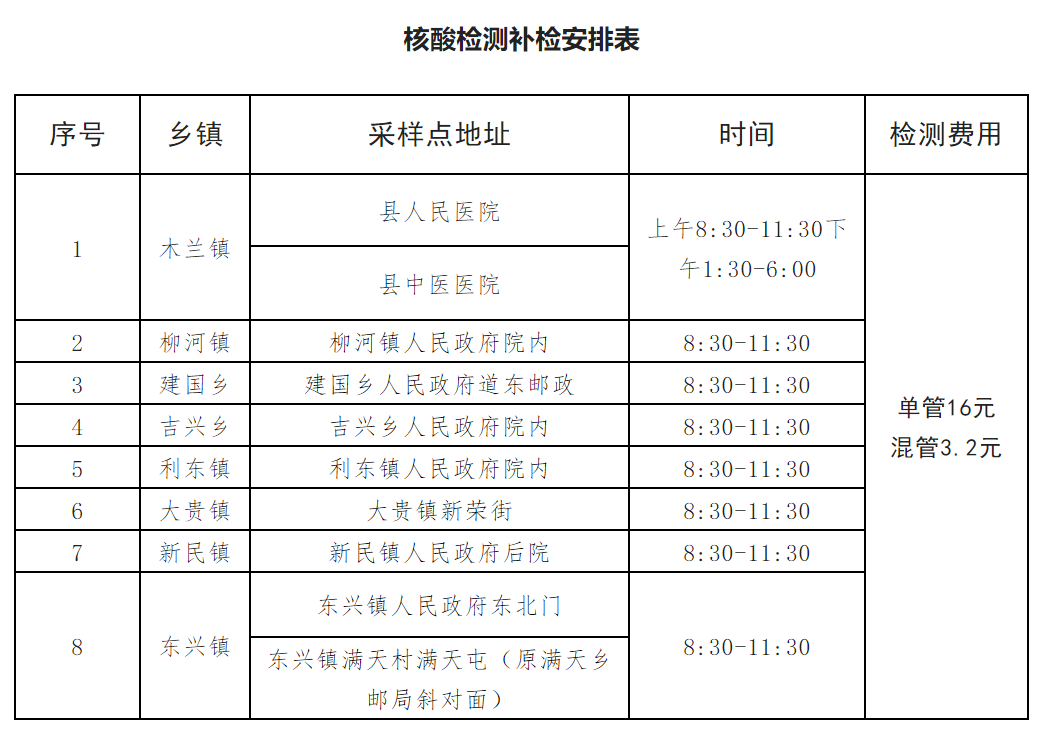 哈尔滨市木兰县核酸检测补检安排表 哈尔滨市木兰县核酸检测补检安排表格