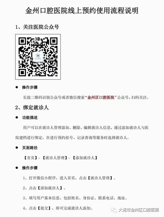 1.关注“金州区口腔医院”公众号-选择“正畸儿牙科”-每周一至周五选择“窝沟封闭专用”挂号0元。(提示:周末不做免费窝沟封闭。)