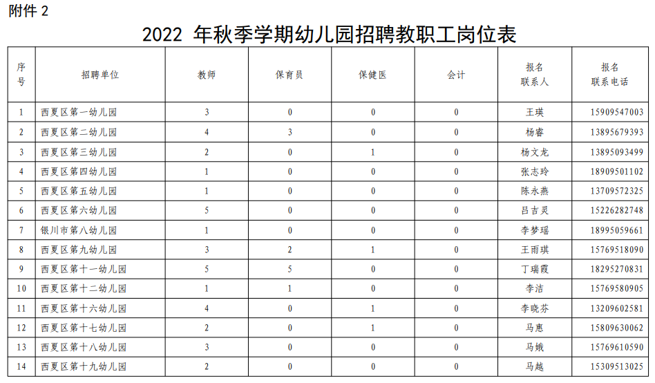2022银川市西夏区秋季招聘幼儿园教职工公告