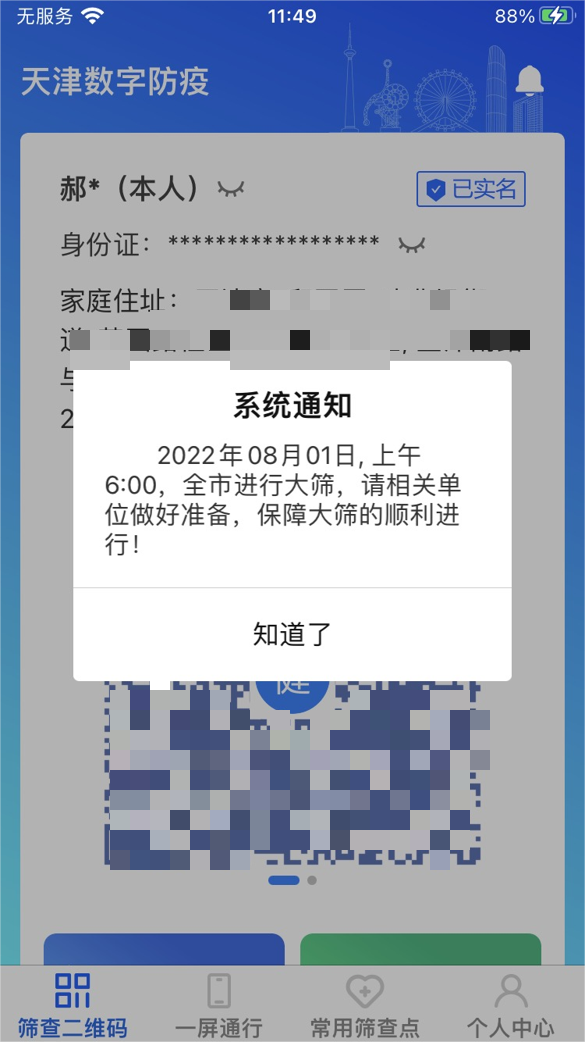 不能参加筛查的市民可直接在APP中进行未筛查报备,报备信息将自动推送给负责核酸筛查的工作人员。