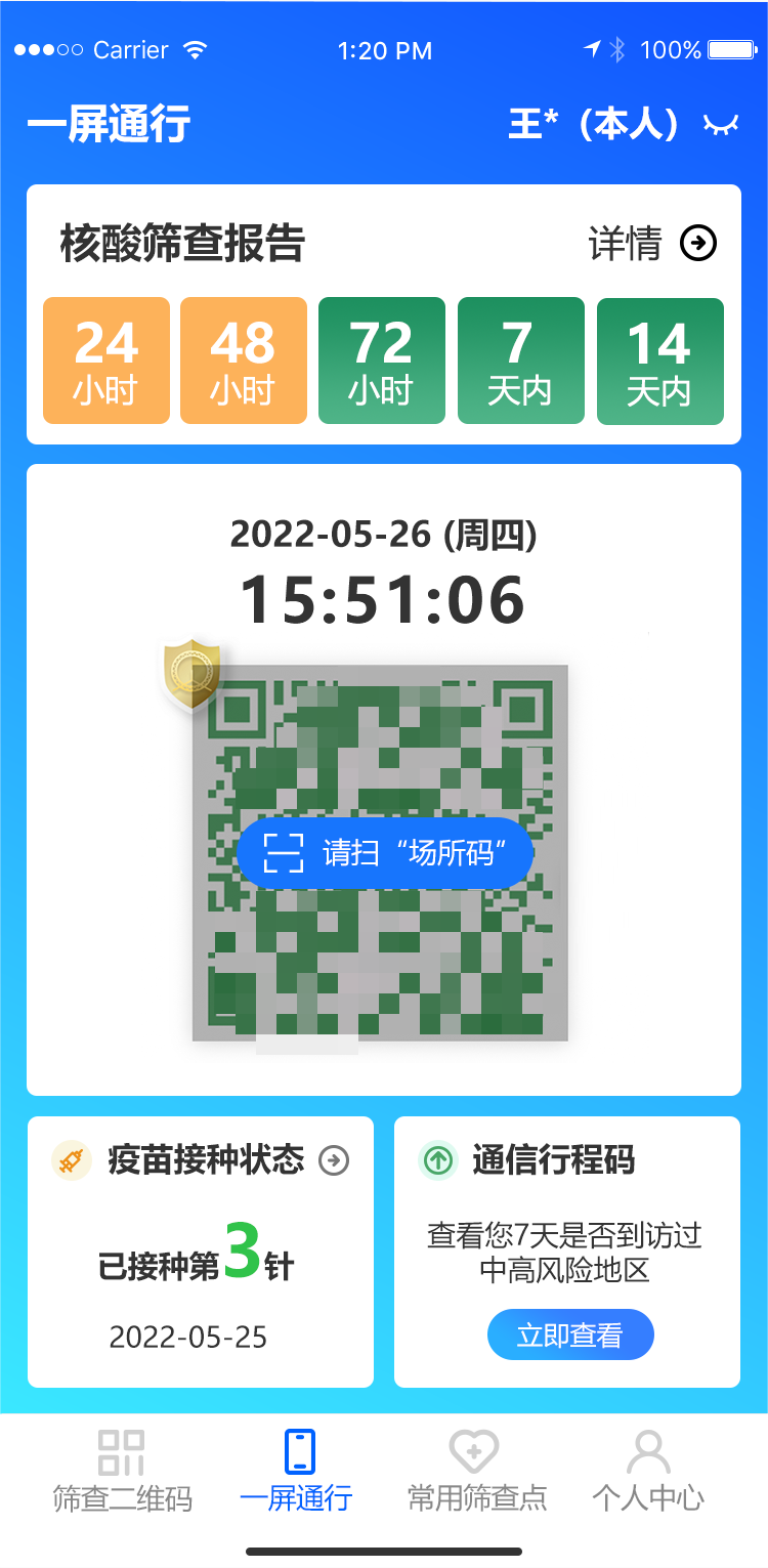 进一步将健康码、场所码、行程码、疫苗接种记录、核酸检测记录等功能在一张屏中显示,实现市民一屏通行。