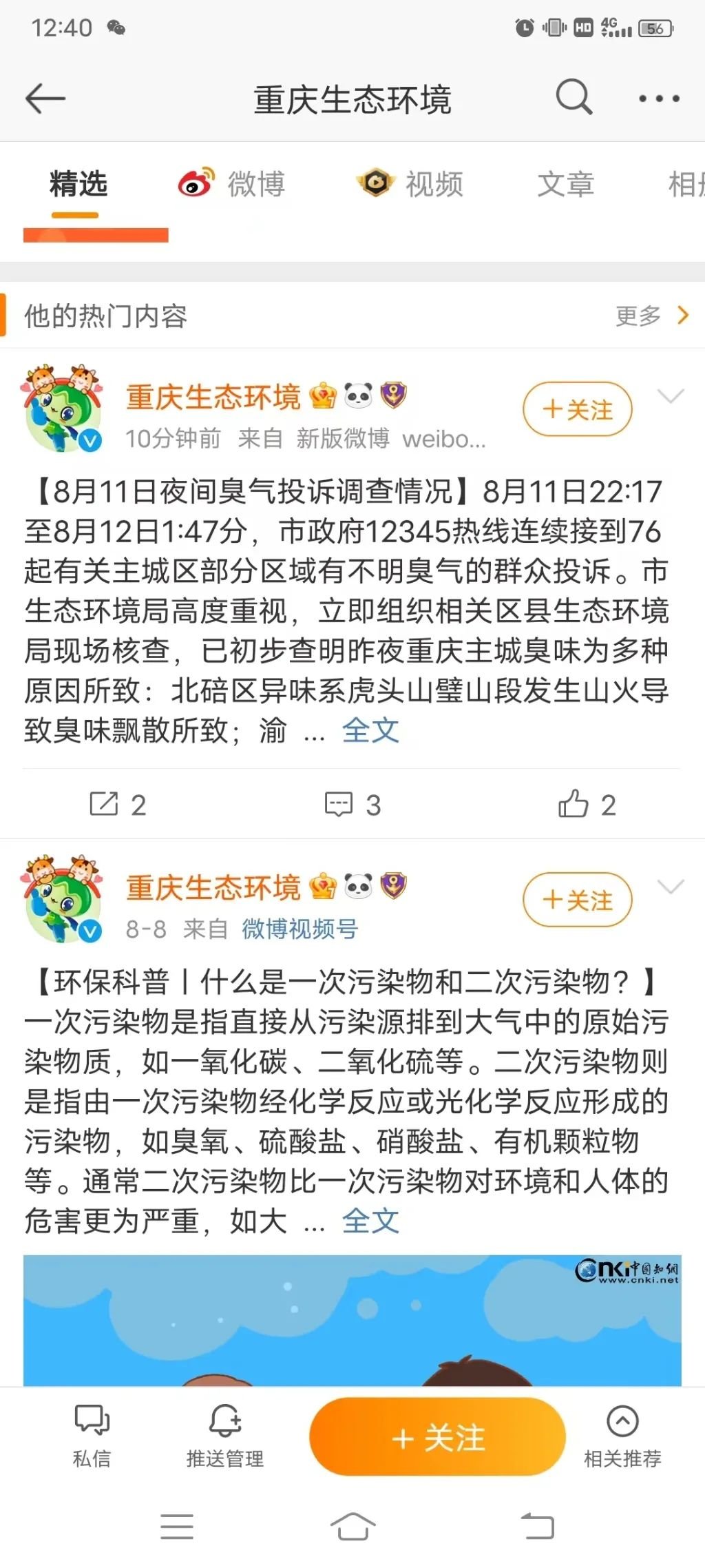 8月11日深夜,微博有帖子称“今晚有不少重庆市民闻到了臭味,你那有闻到吗”,引发热议。8月12日中午,重庆市生态环境局官方微博公布臭气投诉调查情况。