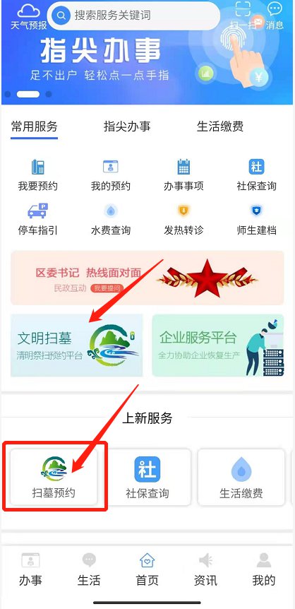打开“i顺德”APP,在“首页”版本点击“上新服务”栏目下的 “清明祭扫预约”应用即可进入清明祭扫预约系统。