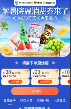 2022年8月13日至8月31日每天早上10点,在美团App或美团外卖App,搜索【解暑降温消费券】或【夏日冰品】即可进入活动页面领取。