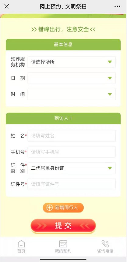 温馨提示:非清明期间,各殡葬服务机构按常提供祭扫服务,无需预约。