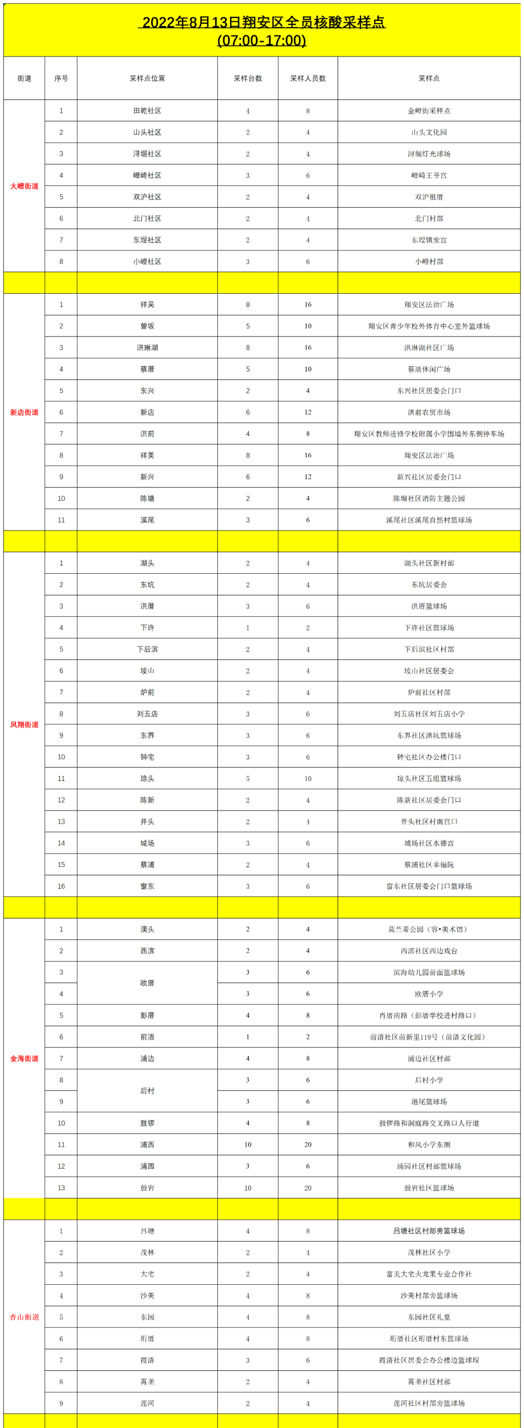 翔安区核酸采样点如下