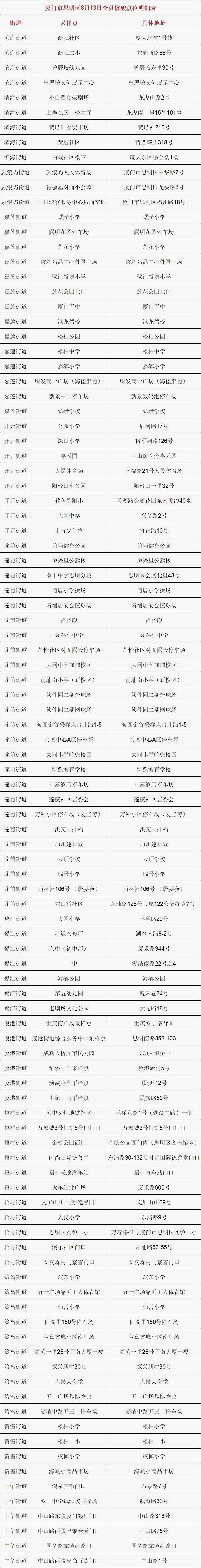 2022年8月13日厦门核酸检测点6区汇总(厦门公布24小时核酸检测点)
