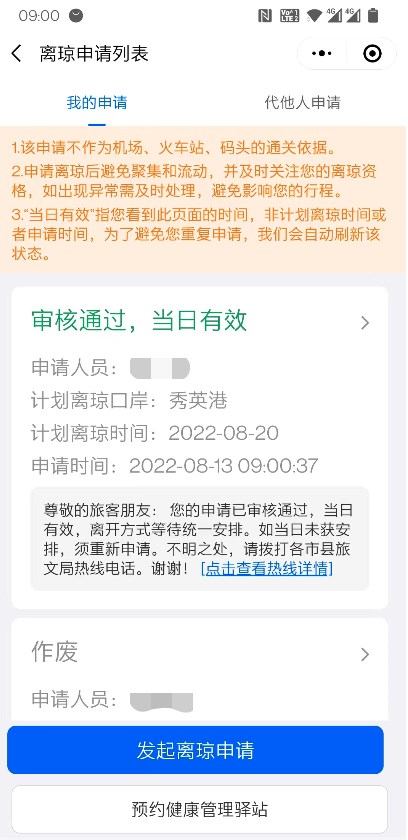 2、 本人当前“离琼申请”已过当日有效期,需重新发起离琼申请;