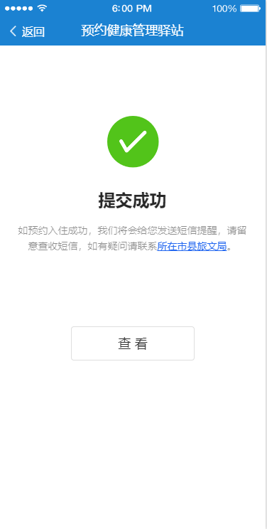 完成“健康管理驿站”预约的旅客,如预约成功,我们将会给您发送短信提醒,后续将由市县政府安排专用车辆将旅客从滞留地点闭环送至健康管理驿站,完成管理后,凭健康监测证明“点对点”闭环转运至港口返程。