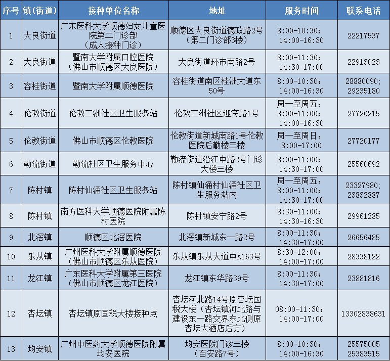 顺德区卫健部门发布消息,顺德区首批共有13家接种门诊开放预约,有意向接种的市民可通过“粤苗”APP,或者致电相关的接种门诊进行预约。