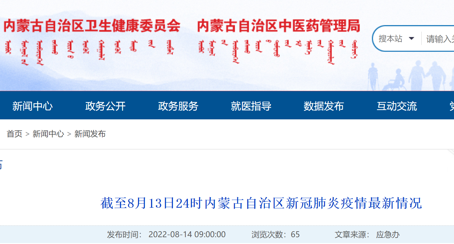 截至8月13日24时内蒙古自治区新冠肺炎疫情最新情况